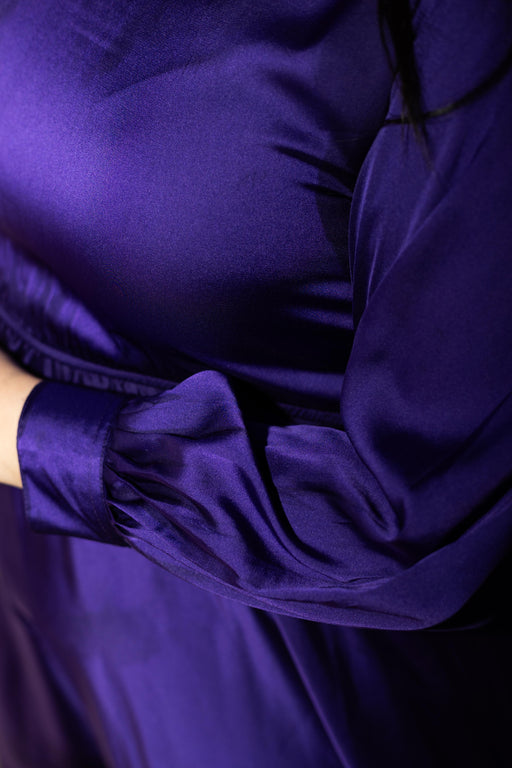 Curvy Closet100% Satin balloon sleeves evening gown, with elasticated waist and round neck. Zip fastening at the back concealed in the seam.