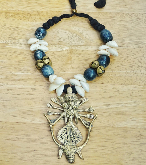 View full detailsEthnic Handcrafted Black Threaded Dokra Necklace - Durga Pendant