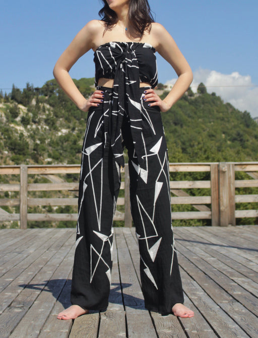 The Fashion HouseVersatile Bandeau top, can be tied from the front, from the back and around the neck - Flowy wide-leg pants with Stretchy High Waist. Product...