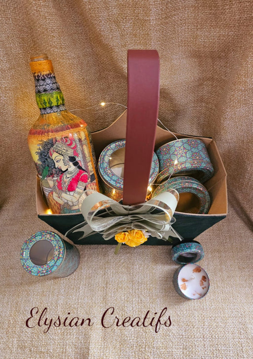 Elysian creatifsElysian Creatifs Medium Jute Basket for Diwali Hampers 79 AED includes 2 dry fruit jars 9 Ferero Rocher Candle or diya 1 piece This luxurious and...
