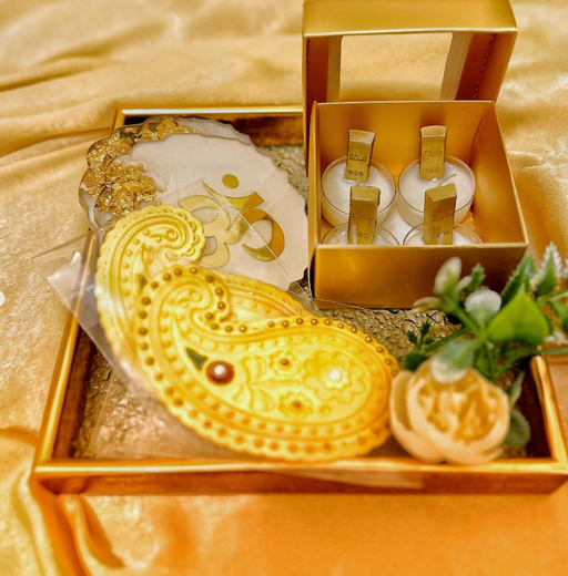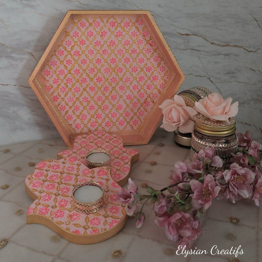 Elysian creatifsIndulge in luxury with this handcrafted decoupage tray, featuring a set of two exquisite candles and two jars in a stunning gift package. Priced ...