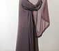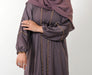 Introducing the Arwa Abaya, a statement of timeless elegance. Dressed in a rich plum hue, this abaya comes with an attached inner slip. Enclustered with a gold wavy embellishment trailing down the front of the abaya and around the sleeves. This set includes a matching shela.