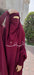 Our personal favorite! This burgundy color is a combination of both sophisticatedness and fun. Our 3 piece Jilbabs with elasticated sleeves are perfect for outdoor and indoor wear It provides full coverage of the body with a free size loose fit so you remain care-free when out and about. Made with premium quality Nada fabric, the Jilbabs are soft and airy and perfect for both summers and winters. Our Jilbab come with a tie-back top Khimar featuring elasticated sleeves, an elasticated skirt that can be easily adjusted according to your height and a standard niqab with tie-backs to cover the face. himar Front 44 in
