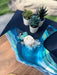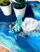 This beautiful Druzy Ocean Serving Board is perfect for any serving platter. Crafted with resined ocean colors and adorned with sparkling crystals and stones, the board will bring a touch of beachy beauty to any gathering. Its sleek yet sturdy design will make it a useful and stylish addition to your kitchen.