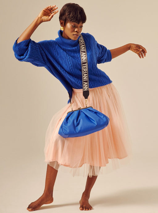 Anni TerianiItem fabric: 75%polyster 25% cotton Designer note: Small clutch with an amazing blue color will look fabulous for day and evening. Our amazing comb...
