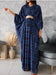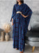 Moroccan printed blue kaftan with inner tie Product ID : 34282