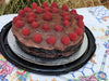 Gluten Free and Vegan Dark Chocolate Raspberry Cake – Organic gluten free flour, organic raw unrefined sugar, coconut milk and decorated with ganache frosting made from coconut cream, dark chocolate and organic raspberries.