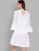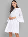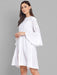 Floral Embroidery adorn the entire front and long bell sleeves of this semi casual dress with a breezy shift silhouette, whether you're dressing for a formal meeting or after office cocktail party this embroidered shift dress is fresh, lovely and versatile.