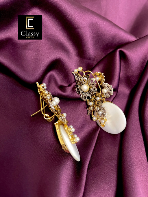 Classy CutsThe Pearl Petal Earrings with the combination of pearl/stone hanging are a timeless piece that celebrates the beauty of nature, making them a perfe...