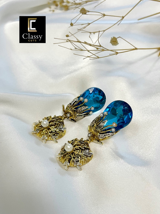 Classy CutsDive into oceanic allure with our stunning handmade blue stone earrings, adorned by a lustrous gold frame that captures the essence of the sea. The...