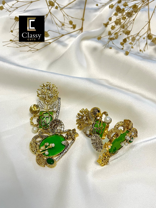 Classy CutsHand Crafted with precision and passion, these earrings are adorned with a symphony of stones and pearls, capturing the allure of a peacock in full...