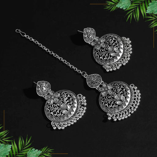 View full detailsSilver Color Oxidised Earrings Tikka Set (GSMTE135SLV) - Silver