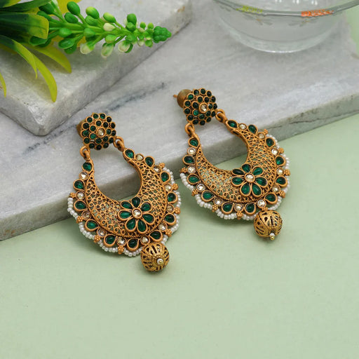 AmairaEarring Length: 7.50 CM x Width: 4.50 CM Metal: Alloy With Good Quality Matte Gold Plated Color: Green | Stone: Glass Stone Gross Weight: 33.00 Gra...
