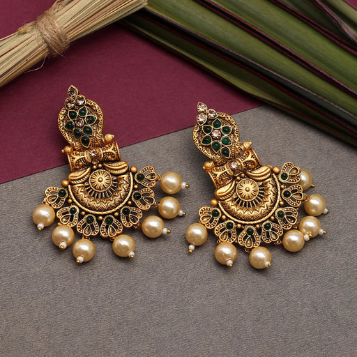 AmairaEarring Length: 7.50 CM x Width: 2.50 CM Metal: Alloy With Good Quality Matte Gold Plated Color: Green | Stone: Glass Stone & Imitation Pearl G...