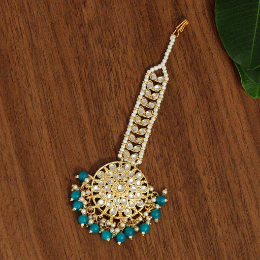 Firozi Color Kundan Maang Tikka (MTK440FRZ) - Firozi