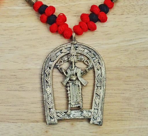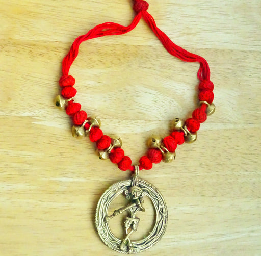 Artisan SoulEthnic Handcrafted Red Threaded Dokra Necklace - Krishna