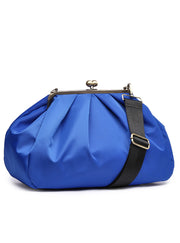 Designer note : Outer nylon blue colour Lining cotton canvas with a signature pattern "Breeze" by Anni Teriani Size (Approx.) - Width 45 cm - Height 28 cm - Depth 15 cm - Frame size 25 cm bronze colour Inside zippered pocket Dry clean only