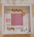 Personalize baby girl's room with this beautiful Scrabble Tile box frame. Makes for pretty décor to add to your baby's room or as a special gift to welcome the newest member of a family. A lovely message using scrabble tiles and vintage style paper has been added. Central space left blank for that special photo. Details like name of child, DOB, time of birth, place of birth; may be added as in photo. Cute baby girl princess on horse figurine is also added.