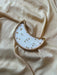 Handpoured candle in a ceramic crescent shaped trinket tray, using natural soy wax and non toxic amber oud fragrance.