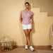 Embrace sustainable style with this chic linen wrap top in a delicate dusty rose hue. The versatile design allows for easy styling, while the sustainable linen fabric ensures a conscious choice for your wardrobe