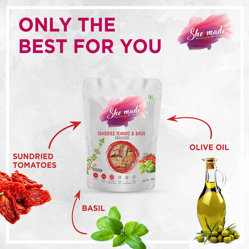 View full detailsShe Made Sundried Tomato & Basil Crackers 150g