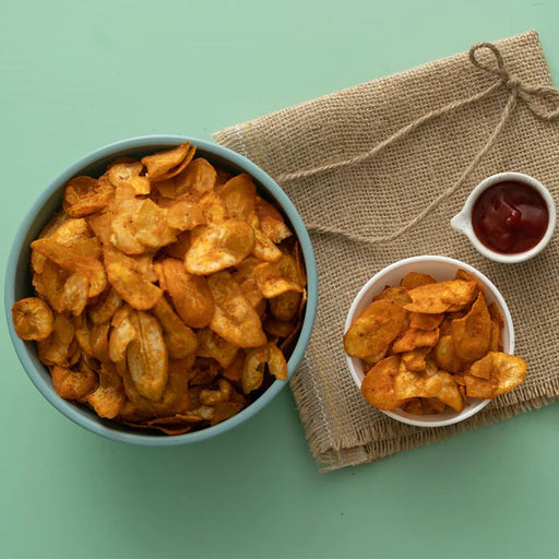Tickle your tastebuds with these crunchy, spicy wafers. Thinly sliced raw bananas are fried and seasoned with red-hot chilli powder to make this fi...