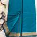 Teal color vintage style saree with small golden boarders, which makes it perfect for function wear.