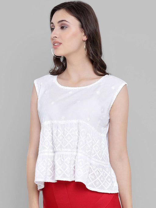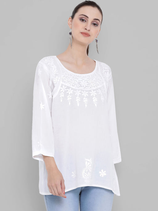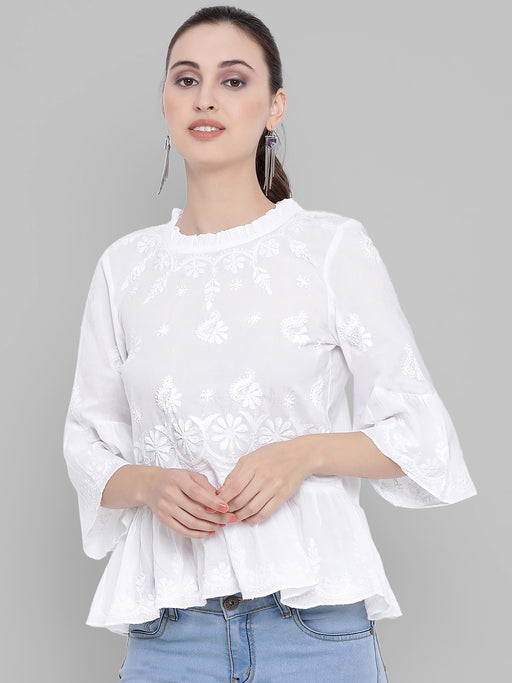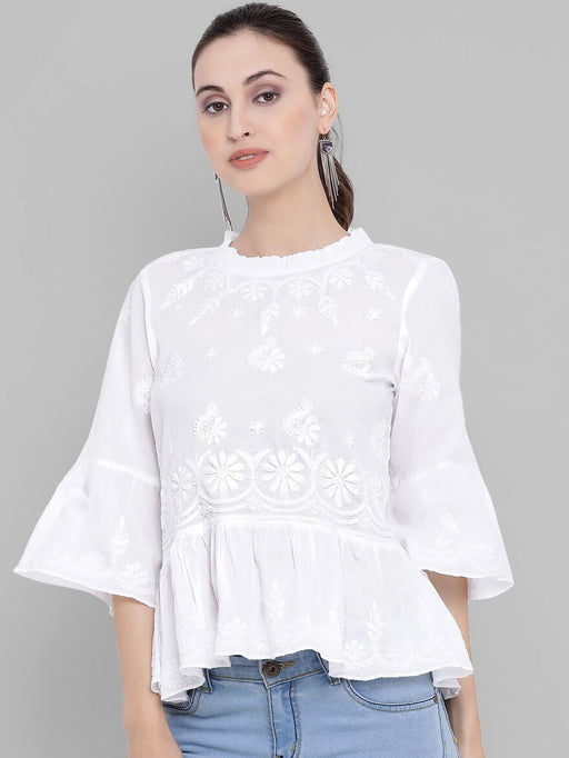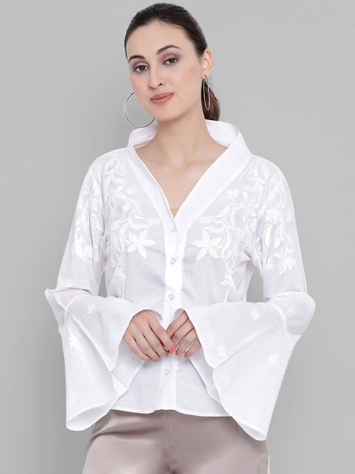 T' Naaz - Naaz TabassumVibrant voluminous sleeves and the shoulder button detail make this soft white cotton top the one to wear whenever you plan on making a dramatic ge...