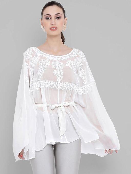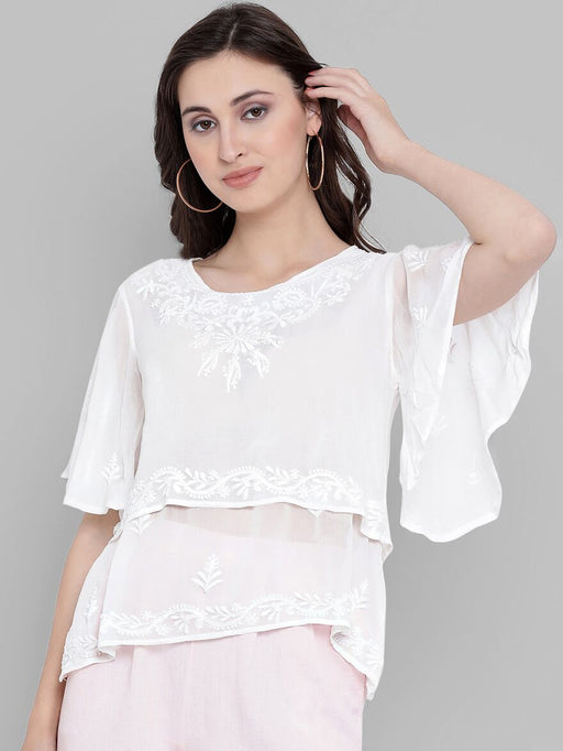 T' Naaz - Naaz TabassumA double layer overlay brings a swingy elegance (and more forgiving fit) to a soft georgette blouse, flowy sleeves complement the style. The neckli...