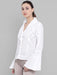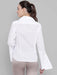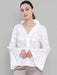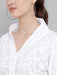 A stiff placket collar and embroidery flowing downwards from the shoulder at the top of the shirt adds drama to this easy-going button-down crisp cotton shirt finished with ladylike bell sleeves.