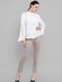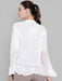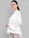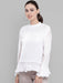 Add a dash of sophistication to your look in this ruffle-hemmed blouse that furthers the charm with embroidered top and frilly finishes of sleeves