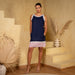 Made with quality linen for a luxurious feel, this sleeveless shift dress in a timeless navy hue is an investment piece you'll wear for years to come. The clean lines and flattering silhouette make it a wardrobe staple.