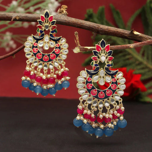 AmairaEarring Length: 5.00 CM x Width: 3.00 CM Metal: Alloy With Good Quality Gold Plated Color: Blue | Stone: Glass Stone & Beads Gross Weight: 22.0...