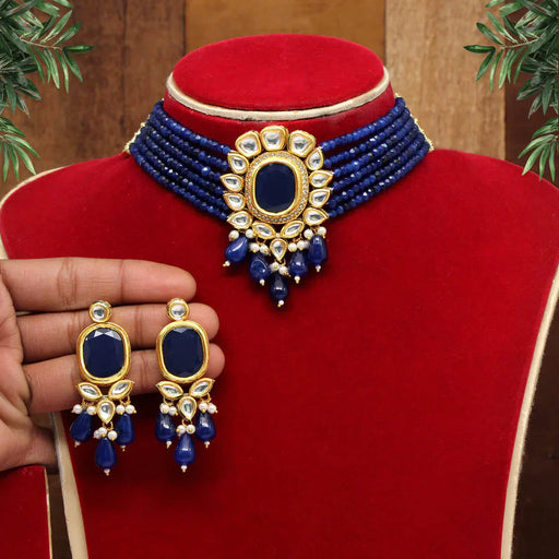 View full detailsBlue Color Choker American Diamond Necklaces Set (CZN473BLU) - Blue