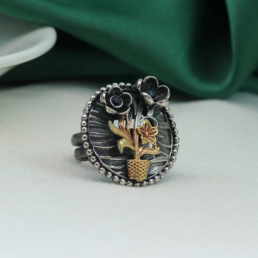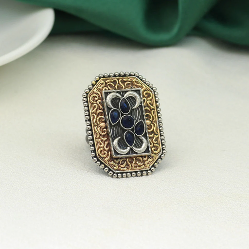 AmairaRing_Size_Adjustable | Diameter Length: 3.00 CM x Width: 2.50 CM Metal: Brass With Good Quality Gold & Silver Plated Color: Blue | Stone: Glass...